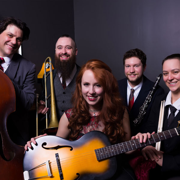 Miss Myra and The Moonshiners are a formidable 5-piece swing band bringing a fresh female-driven perspective playing a broad repertoire of classic tunes from the ‘20s and ‘30s and inspired originals. Highlighting favorites like Sweet Georgia Brown, Five Foot Two/Eyes of Blue, and When the Saints Go Marching In, Miss Myra and The Moonshiners provide powerful vocals, a smoking horn section, and sweet rhythm, they are guaranteed to lift spirits and take you back to simpler times.